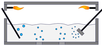 Inline Degassing Model: Trough-type This degassing model simulates a trough based in-line degasser. The user can configure the number of stages, and the number of rotors per stage. The degasser can either be sealed or unsealed from the external humidity. All the usual degasser parameters are variable (e.g. mass flow rate, argon flow rate, rotor speed). The model calculates the steady state level of dissolved hydrogen leaving each state of the degasser. This is a physically based model, which first calculates gas bubble numbers and sizes as a function of stirring intensity, and then determines both mass transfer to the gas bubbles and from the free surface to establish dynamic equilibrium for the system.